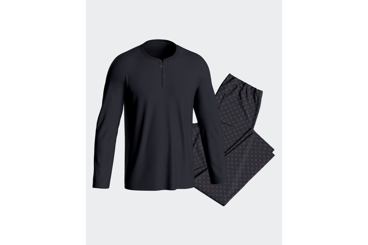 Пижамный костюм мужской благородного темно-синего цвета включает футболку с длинными рукавами и брюки: