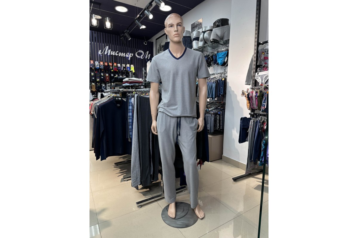Пижама мужская с брюками и коротким рукавом серая Impetus Salsa