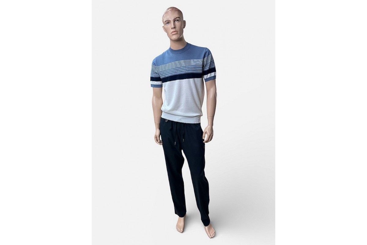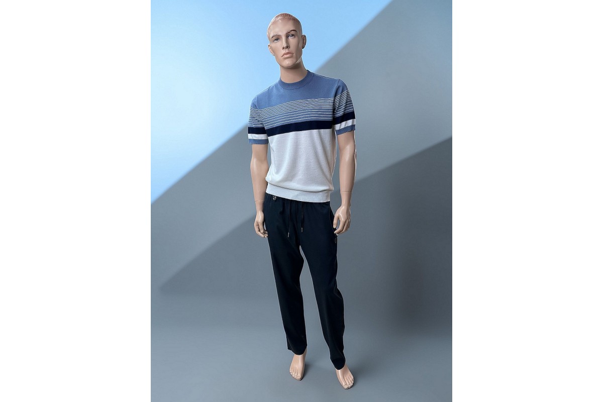 | Модель товара: | Тонкий мужской джемпер в полоску из хлопка с полиэстером |