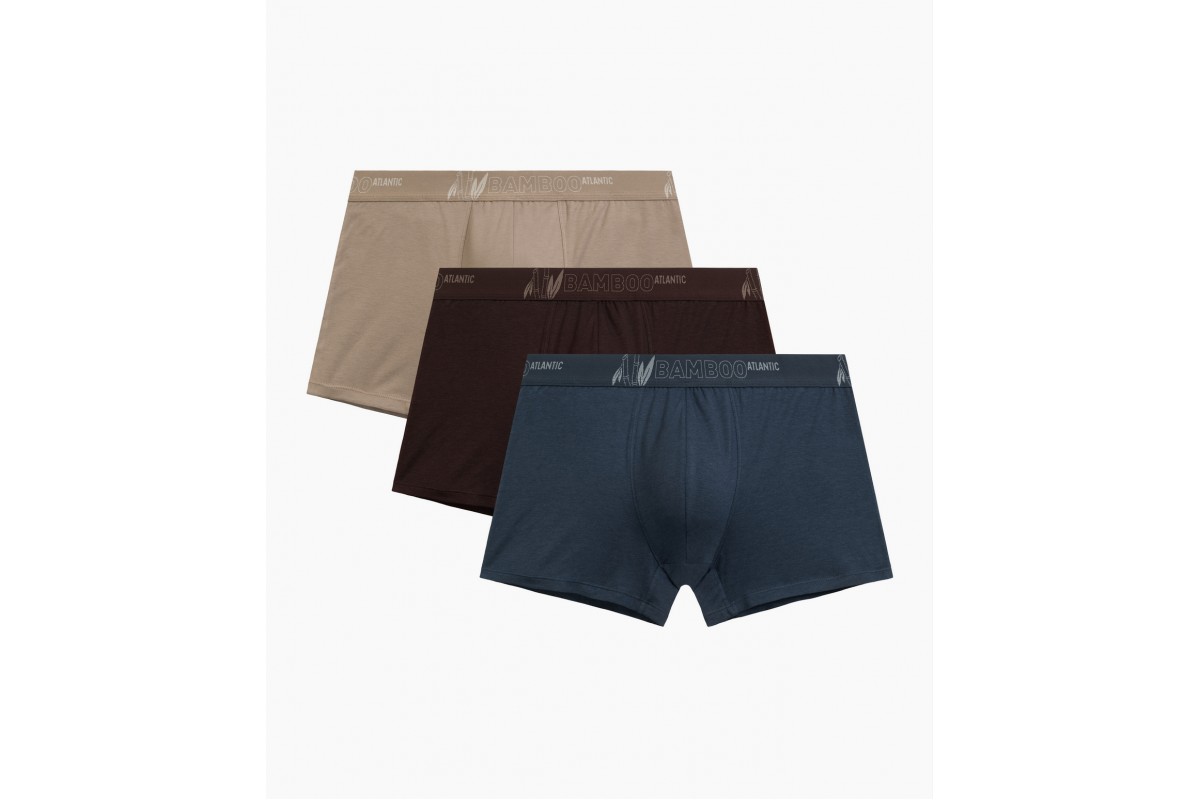 Мужские трусы шорты Atlantic набор 3 шт., бамбук, бежевые + коричневые + сине-зелёные, 3MH-231