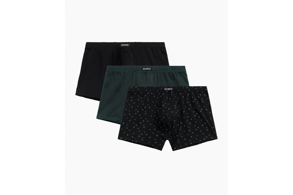 Мужские трусы шорты Atlantic набор 3 шт., хлопок, черные + изумрудные, 3MH-196