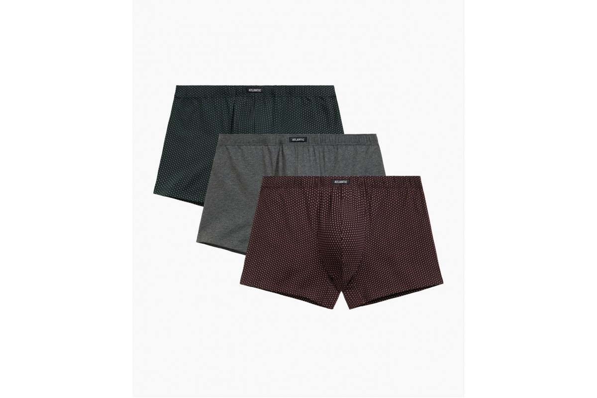 Мужские трусы шорты Atlantic, набор 3 шт., хлопок, изумрудные + темно-серый меланж + баклажановые, 3MH-218