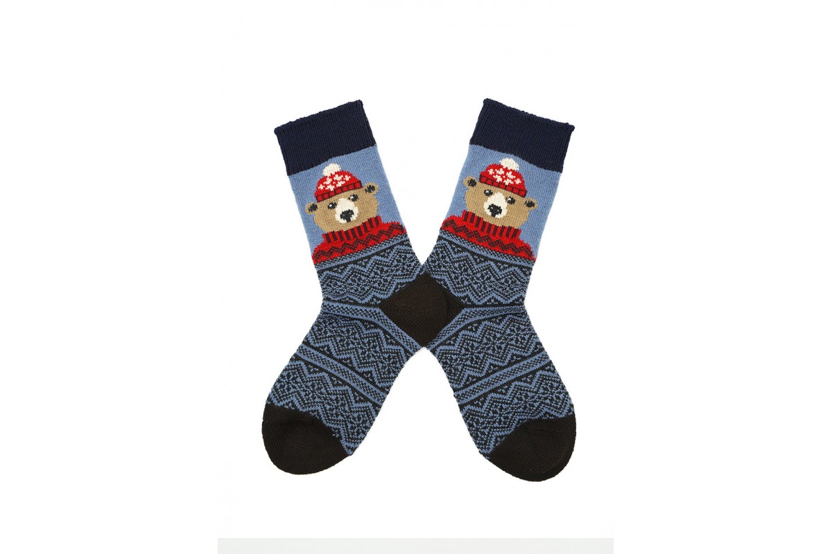 Практичные махровые носки для холодной погоды сочетают функциональность и игривый дизайн: узор с мишкой в шапочке и свитере добавит лёгкости и юмора в повседневный образ.