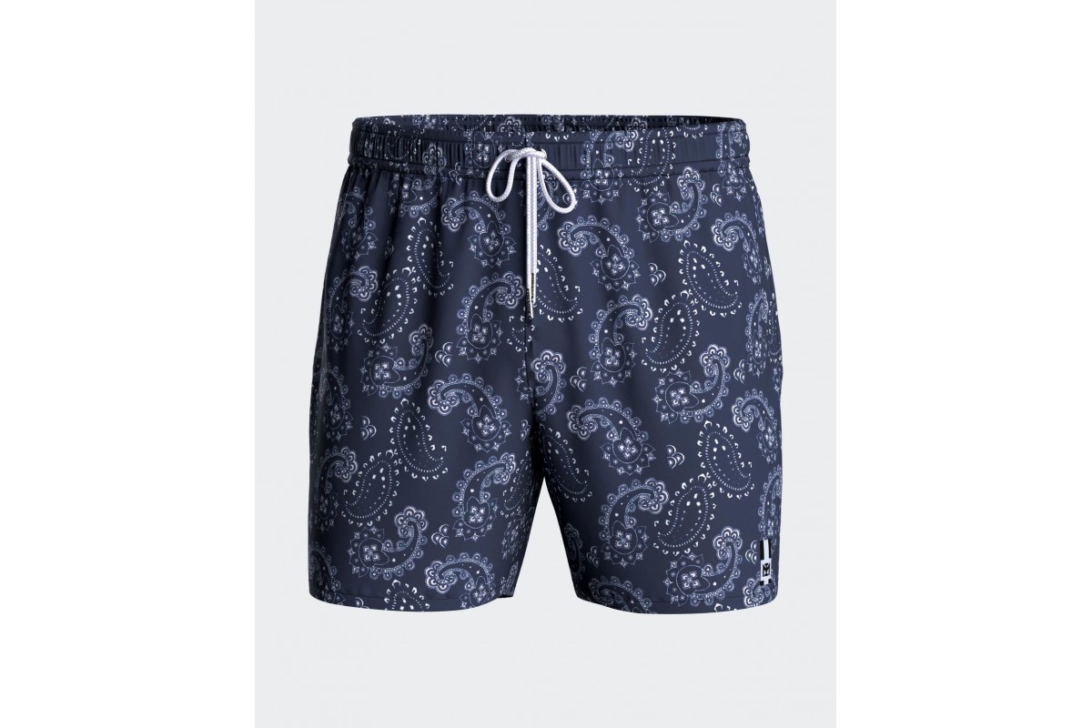 Плавательные шорты мужские Recife из легкого и быстросохнущего полиэстера с рисунком пейсли на синем фоне. Изысканный принт, идеально подходящий для прогулок у моря, пляжных вечеринок или городских летних будней. Оценят мужчины, ищущие баланс между классикой и оригинальностью.